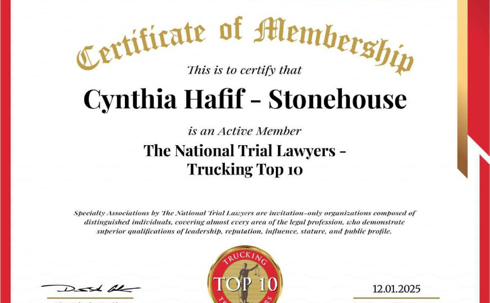 The Hafif-Stonehouse Law Group Named Nation’s Top 10 in the Trucking Trial Lawyers Association